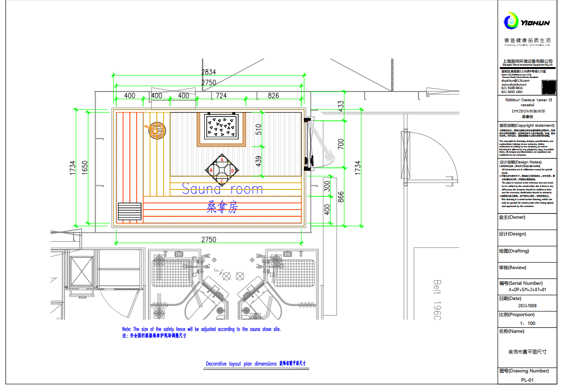 我们团队已配合船厂完成:15000DWT-7#、8#、9#、10#、11#化学品船桑拿房的设计、产品供应、安装、施工、交付船东