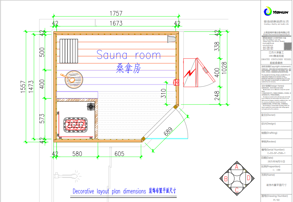 1064船舶桑拿房由我们公司团队全程配合设计,产品供应、施工、售后。